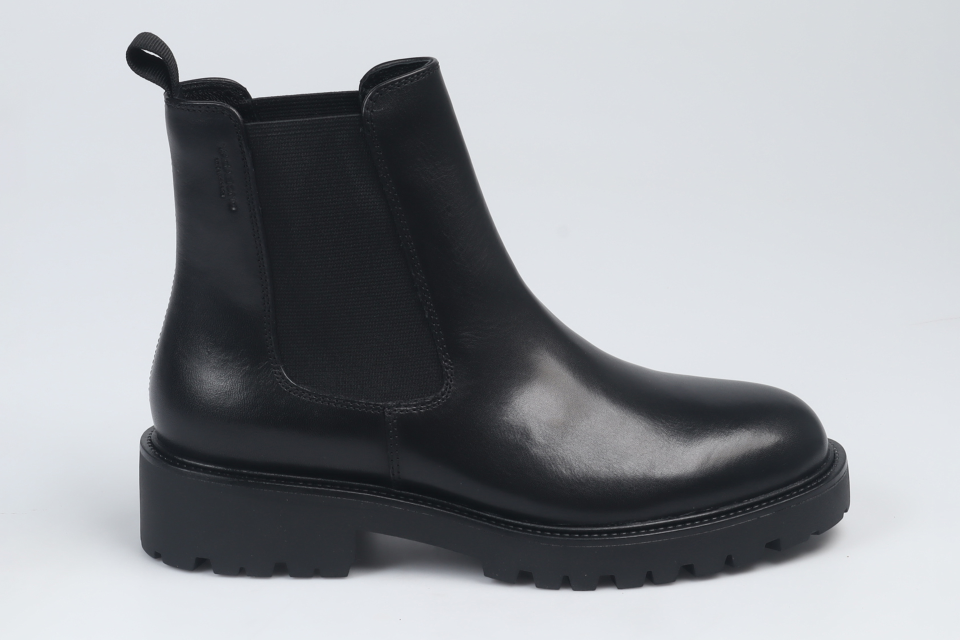 En klassisk chelseaboot från Vagabond. Kenova är i svart skinn och har en innersula i läder. Detaljer inkluderar en hälla och resårpanel. Den räfflade yttersulan mäter 40 mm.