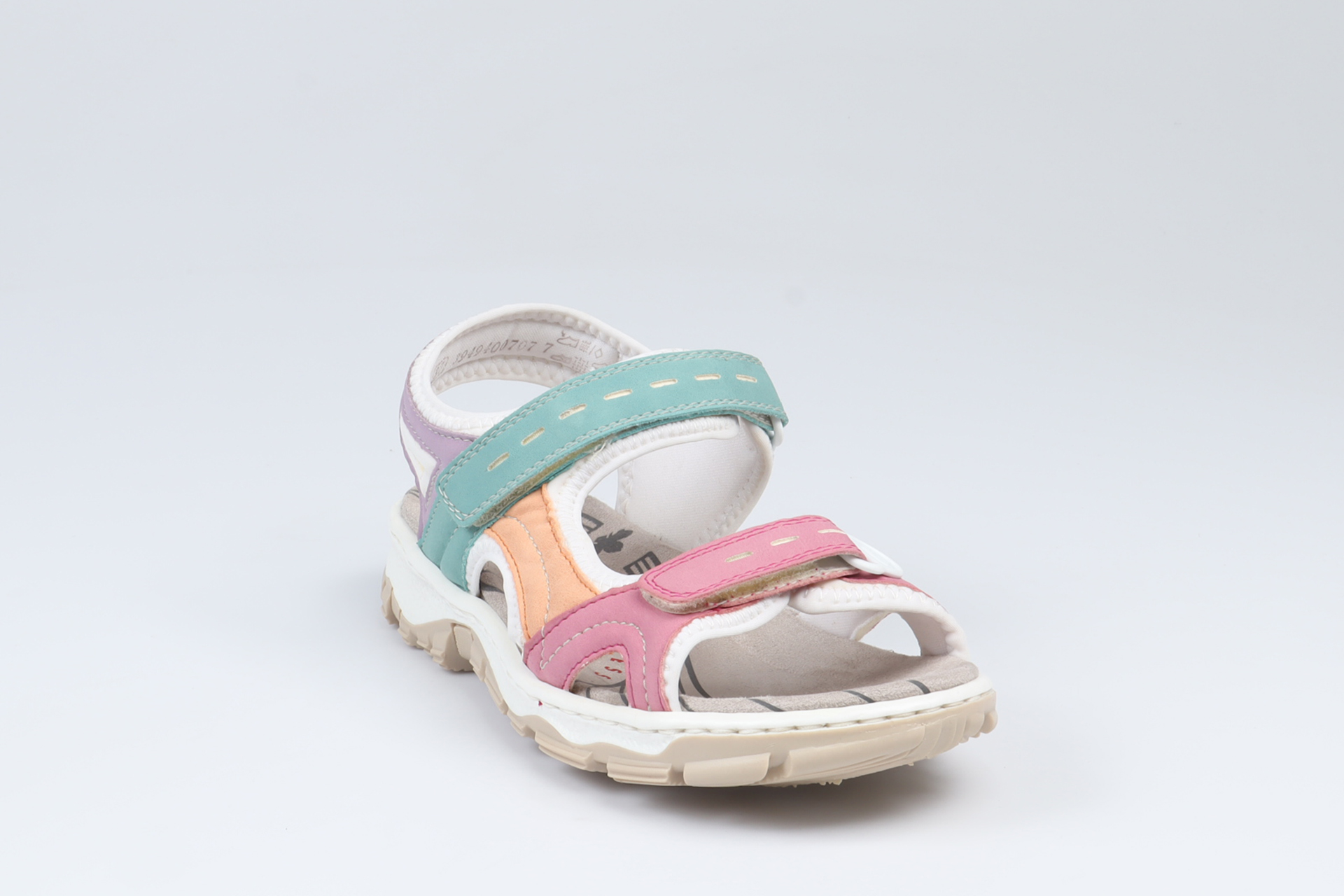 Jubileumsmodell för att fira Rieker 150 år! Somrigt färglad sandal som är mycket skön på foten.