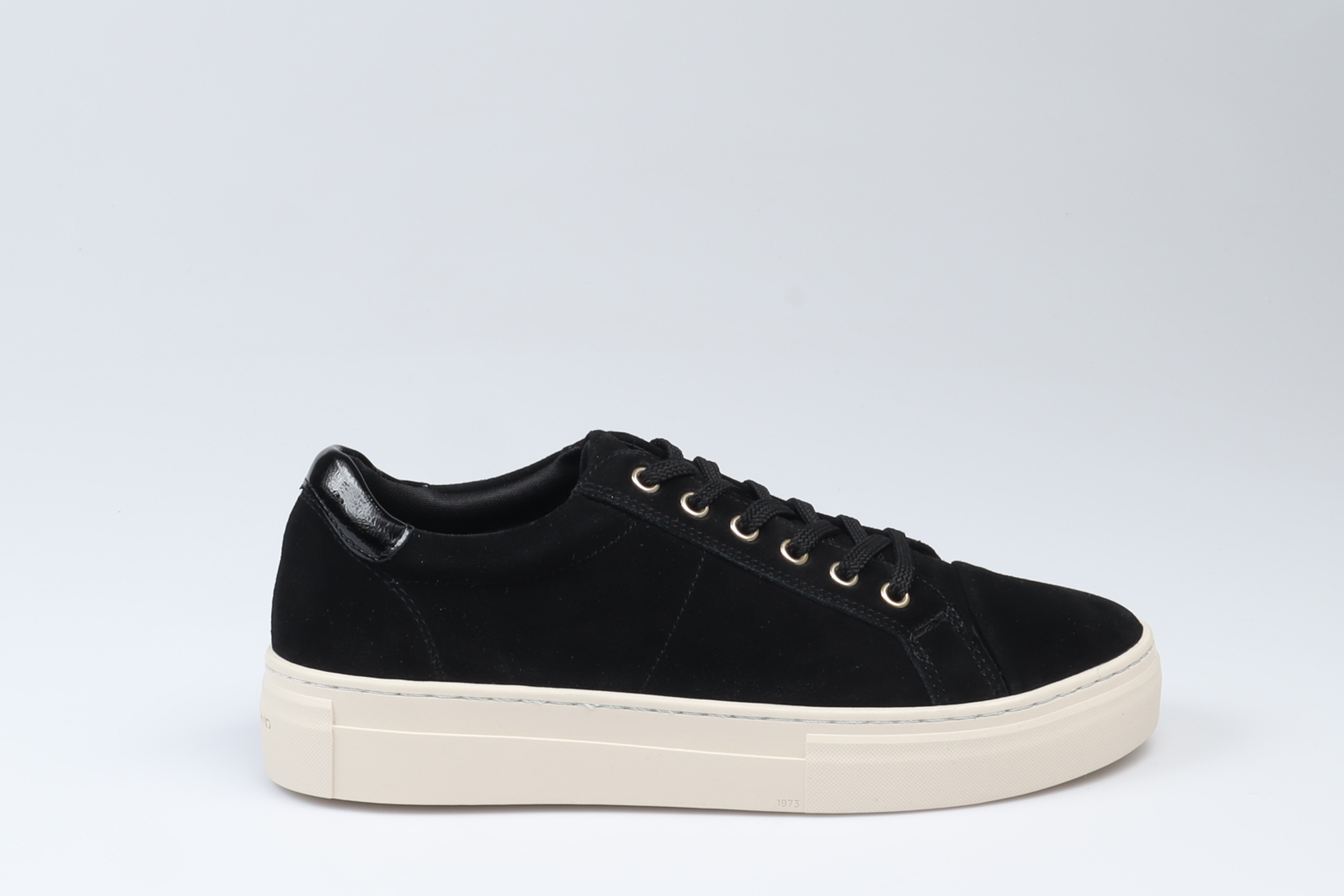 Zoe Platform är tidlösa sneakers från Vagabond. Ovandelen är i svart mocka med rundad tåform, snörning och guldfärgade öljetter. Den höga sulan mäter 40 mm. Detaljer inkluderar dragflik bak.