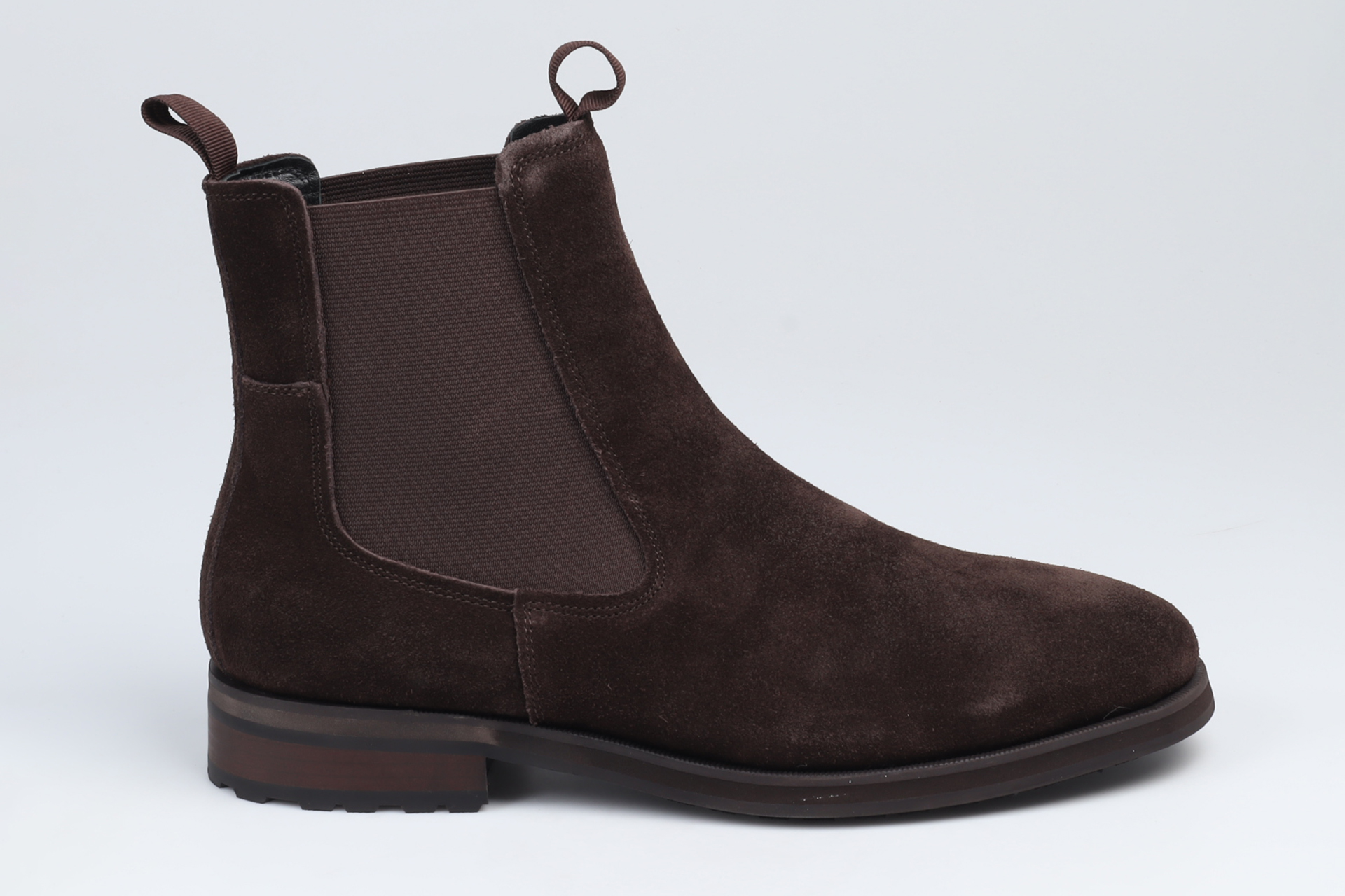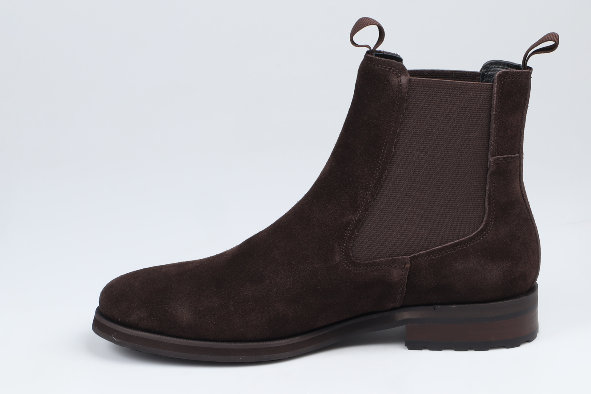 Brian från Vagabond kombinerar en stilren design med en avslappnad silhuett. Chelsea bootsen är tillverkad av mörkbrun mocka och har en flexibel sula med ett traktormönster för bra grepp. Detaljer inkluderar en hälla och innersula i kromfritt läder.